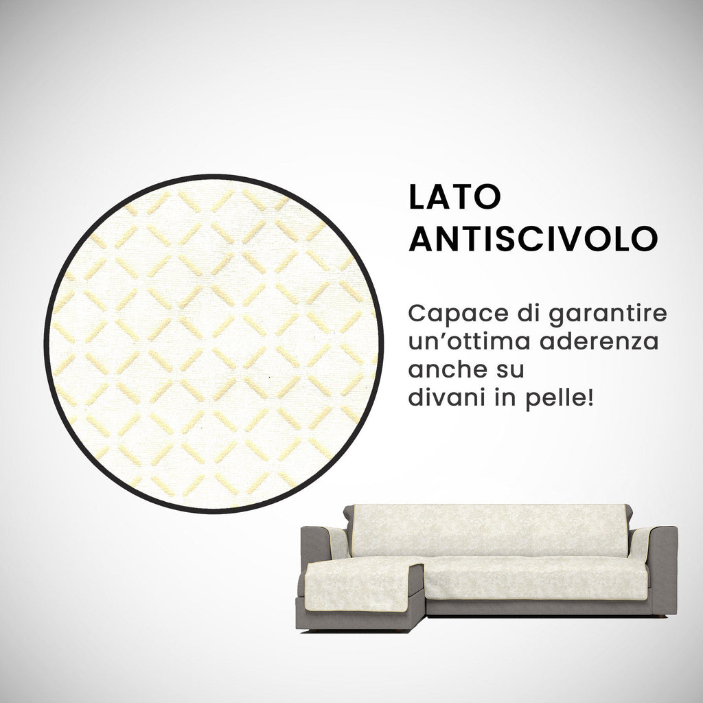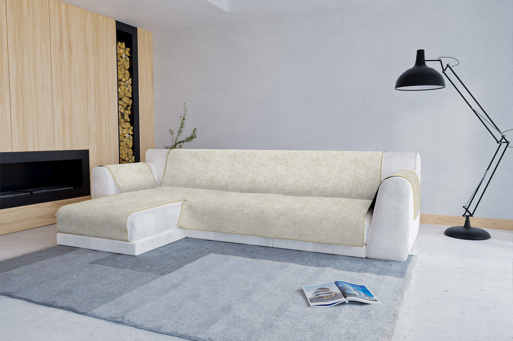 Copridivano con Penisola Sinistra in Poliestere e Cotone Panna Varie Misure