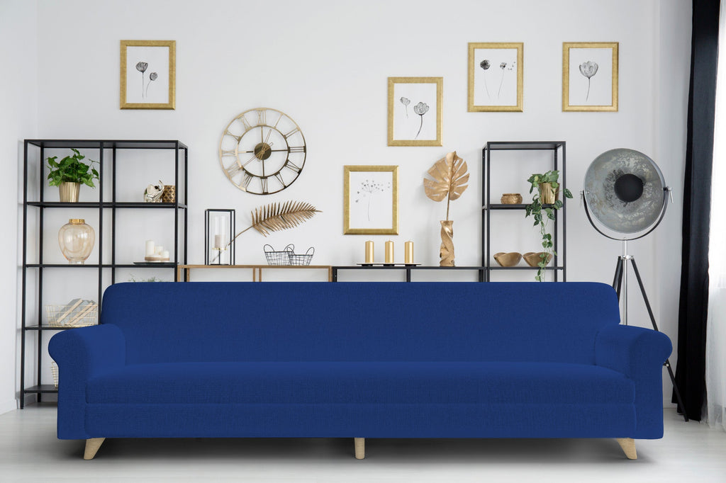 Copridivano Elasticizzato 4 Posti in Poliestere Blu Elettrico