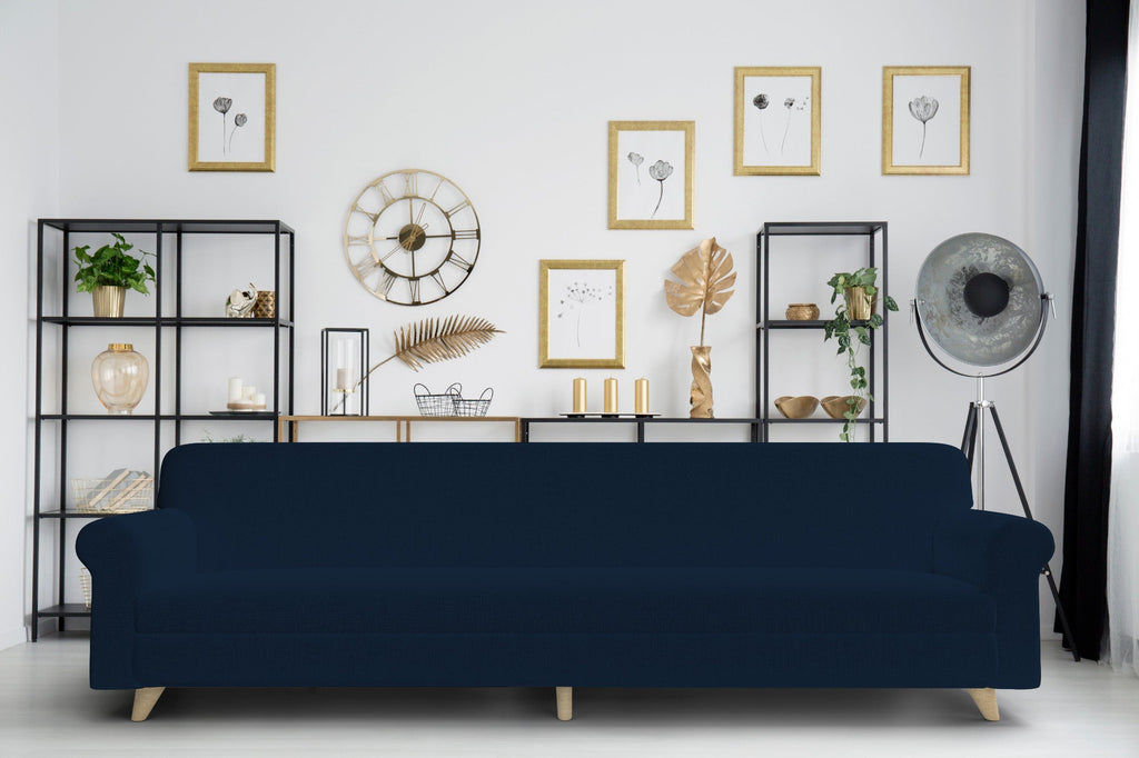 Copridivano Elasticizzato 4 Posti in Poliestere Blu Scuro