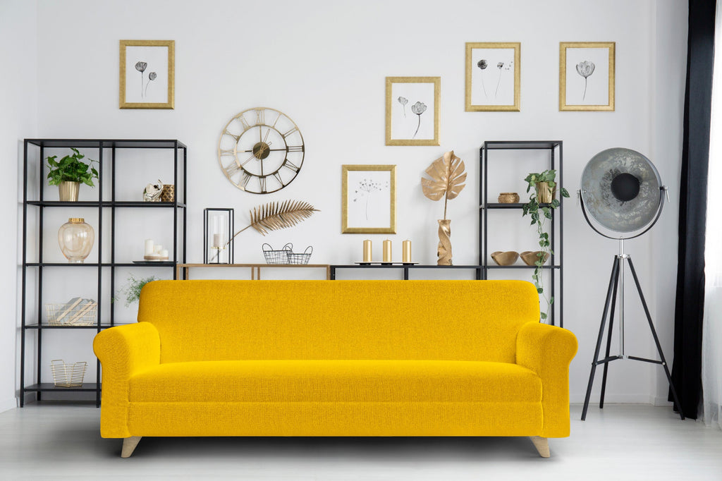 Copridivano 1, 2 E 3 Posti Elasticizzato in Tessuto Giallo
