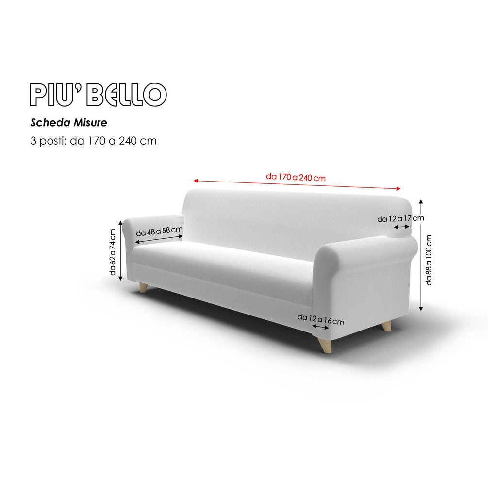 Copridivano bielastico sagomato struttura liscia PIU' BELLO! Realizzato in pregiati tessuti d'arredamento con rifiniture accurate e misure abbondanti che fanno di questo prodotto un capo prestigioso trasformando in un solo gesto l'atmosfera del Vostro salotto rendendolo più elegante e accogliente. Cucito con cuciture resistenti alle trazioni e non a vista con fascia elastica perimetrale alla base per aderire perfettamente al divano.