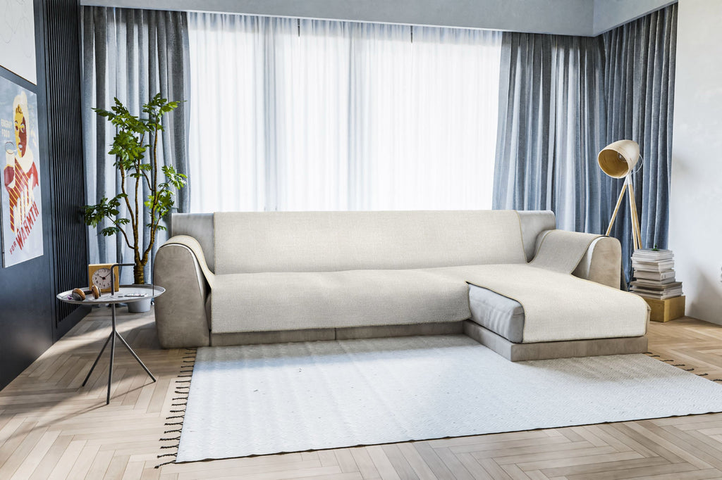 Copridivano in Poliestere con Penisola Destra Panna Varie Misure