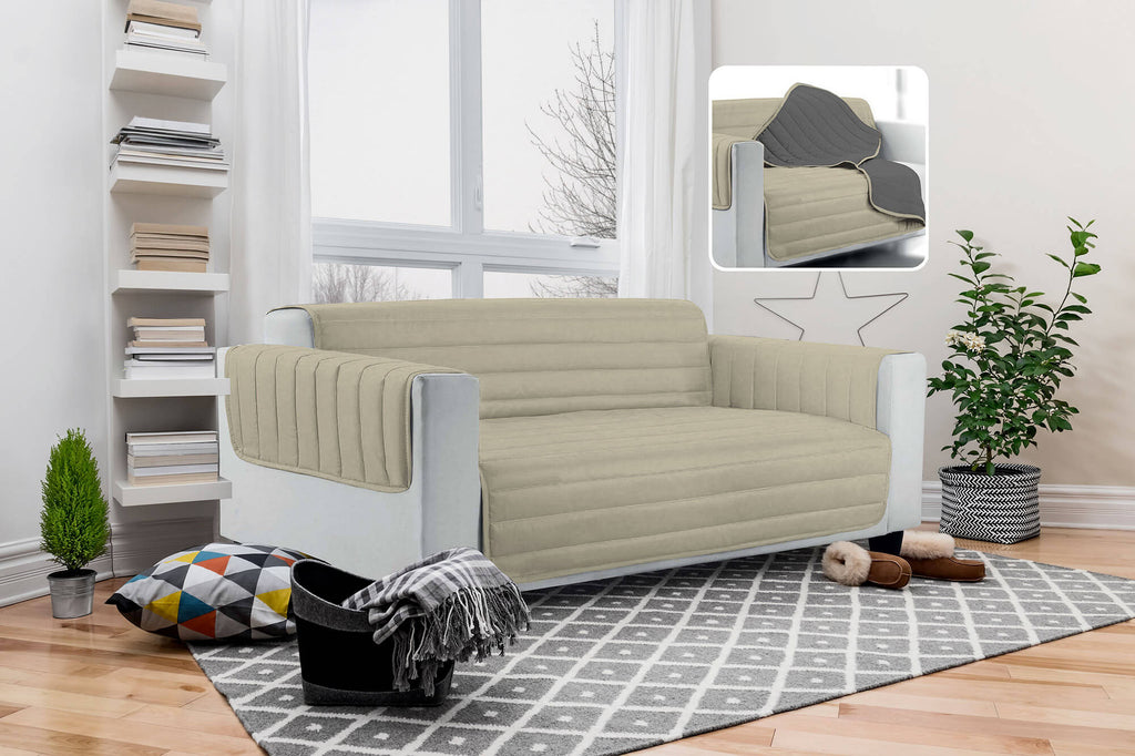 Copridivano Trapuntato 4 Posti Double Face in Microfibra Tortora e Grigio Scuro