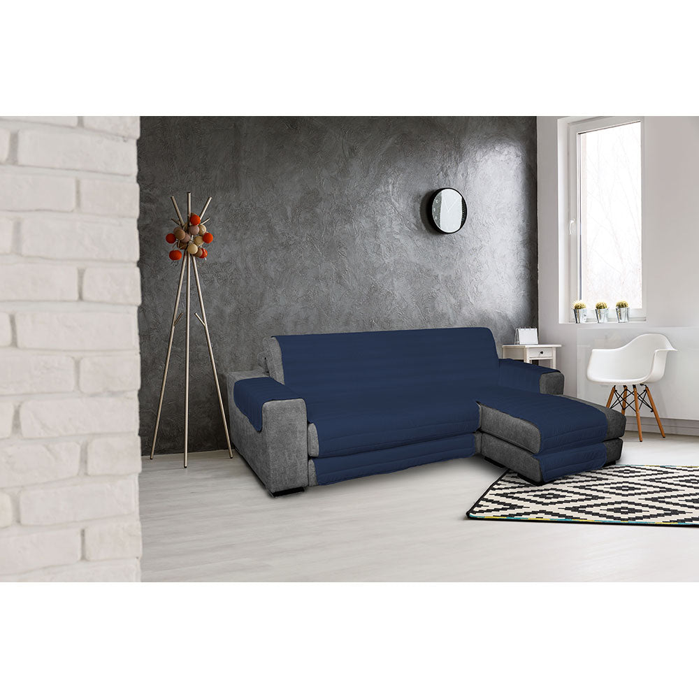 Copridivano Trapuntato in Microfibra con Penisola Destra Blu Scuro