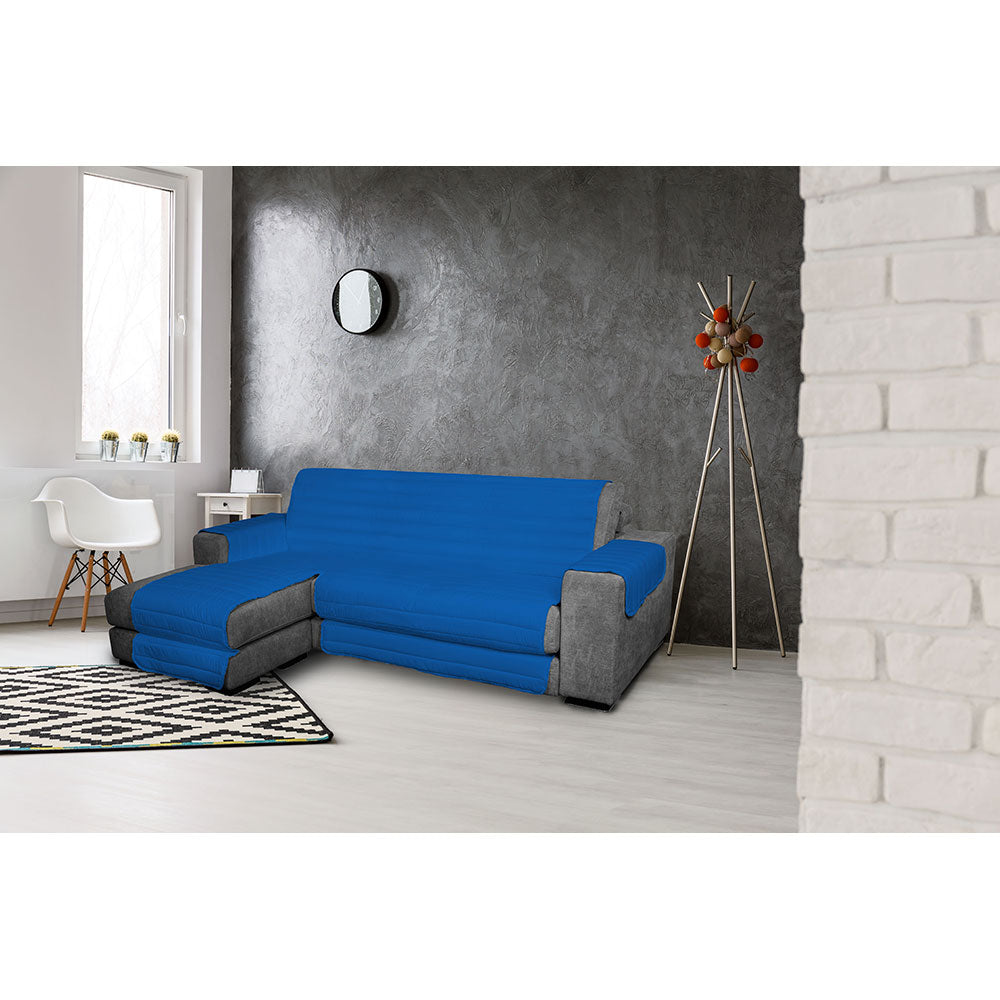 Copridivano Trapuntato in Microfibra con Penisola Sinistra Blu Royal