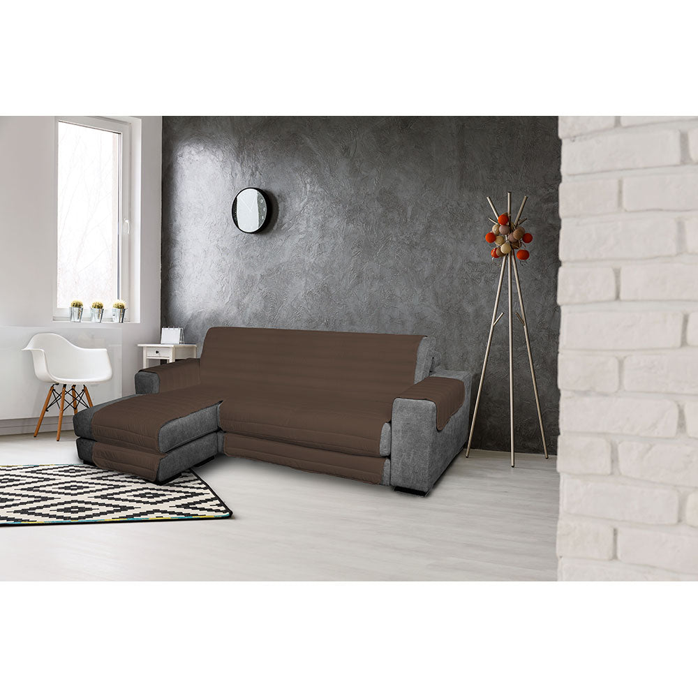 Copridivano Trapuntato in Microfibra con Penisola Sinistra Marrone