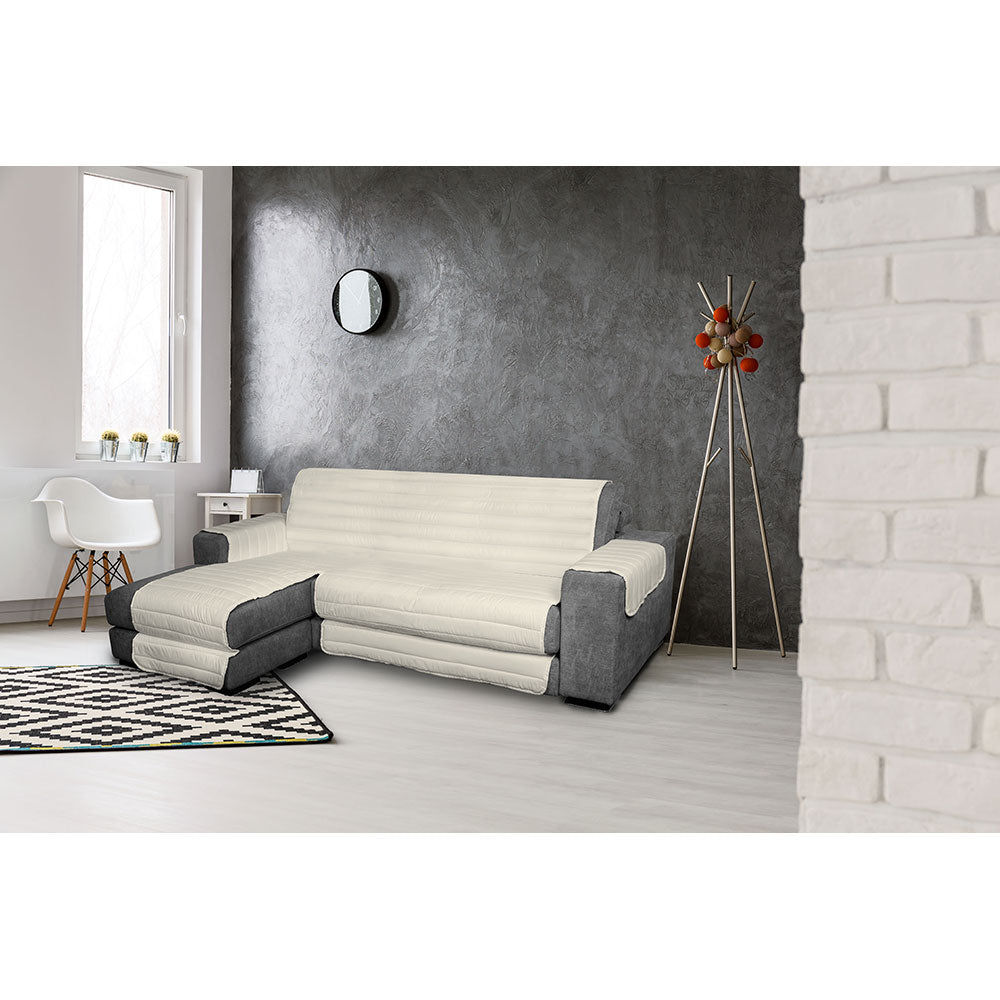 Copridivano Trapuntato in Microfibra con Penisola Sinistra Panna