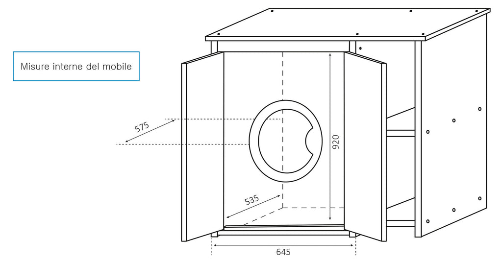 - Dimensioni interne del mobile: 64,5x92x53,5 cm