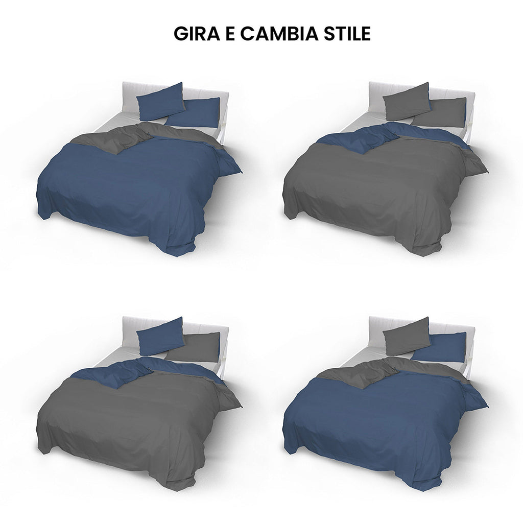 Copripiumino con Sacco e Federe Doubleface Avio\/Fumo