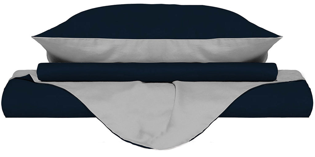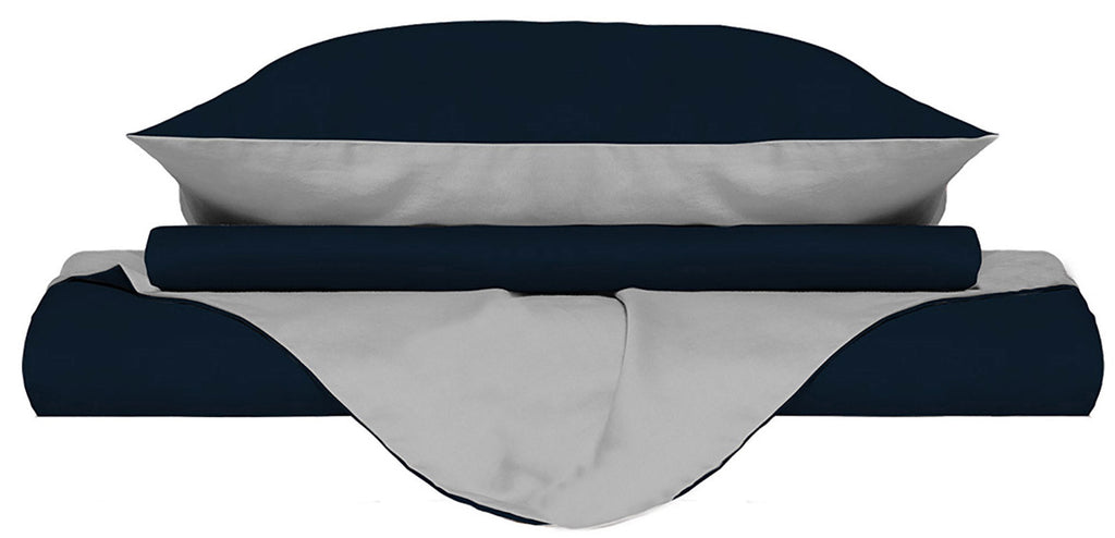 Copripiumino con Sacco e Federe Doubleface Blu Scuro\/Grigio Chiaro
