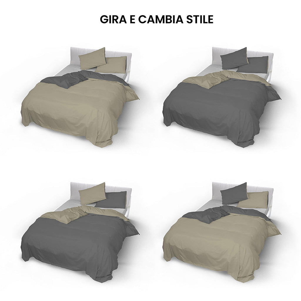 Copripiumino con Sacco e Federe Doubleface Tortora\/Fumo