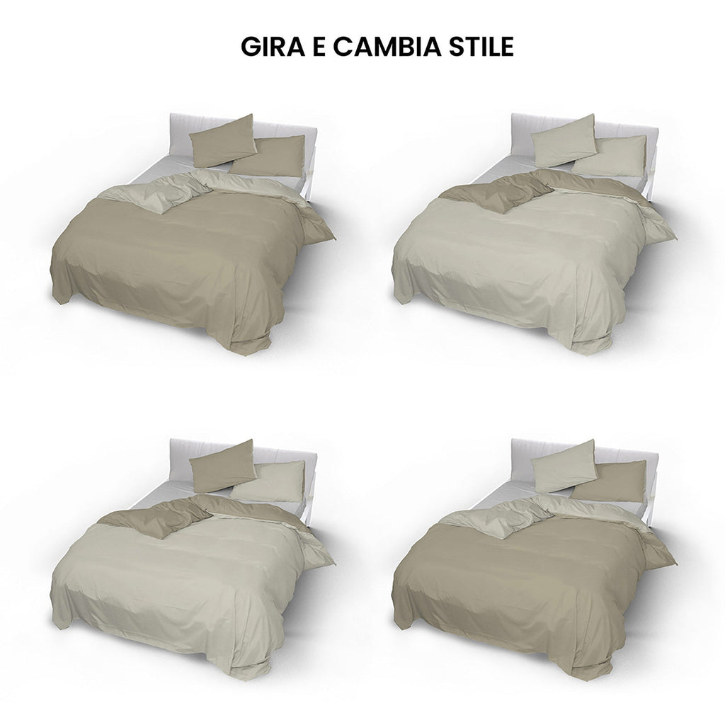 Copripiumino con Sacco e Federe Doubleface Tortora\/Panna