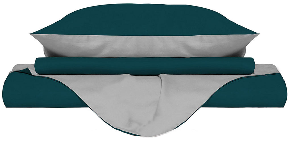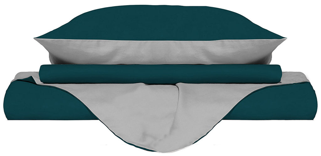 Copripiumino con Sacco e Federe Doubleface Verde Petrolio\/Grigio Chiaro