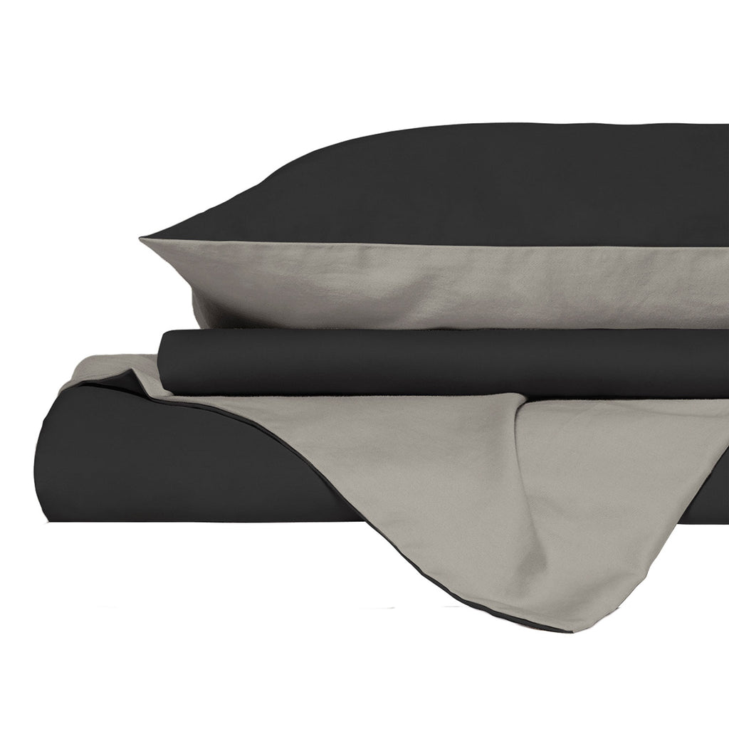 Parure copripiumino provvisto di sacco e federe in tinta unita double face. Articolo disponibile in diversi abbinamenti colore. Prodotto Made in Italy.