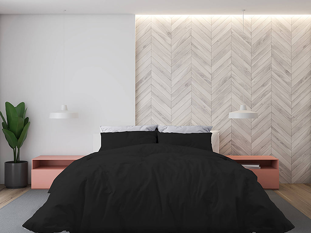 Copripiumino con Sacco e Federe Matrimoniale Tinta Unita in Microfibra Nero