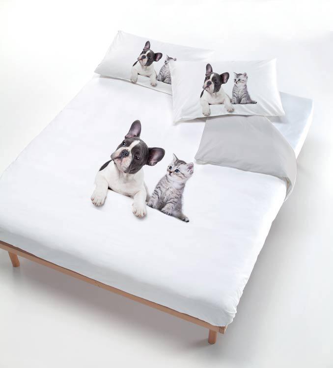 Copripiumino con Stampa sul Sacco e Federe Cane\/Gatto Grigio
