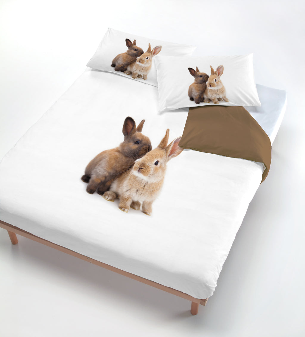 Copripiumino con Stampa sul Sacco e Federe Conigli Marroni