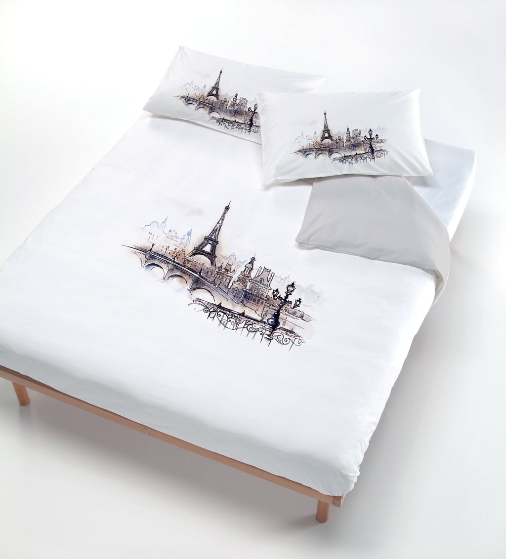 Copripiumino con Stampa sul Sacco e Federe Parigi Grigio