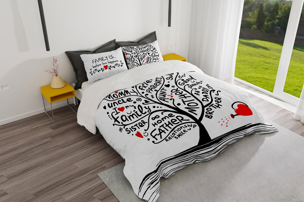 - Matrimoniale: Copripiumino 250 x 200 cm + doppia patella per fissare sotto il materasso di 50 cm + 2 federe 52 x 82 cm + patella interna