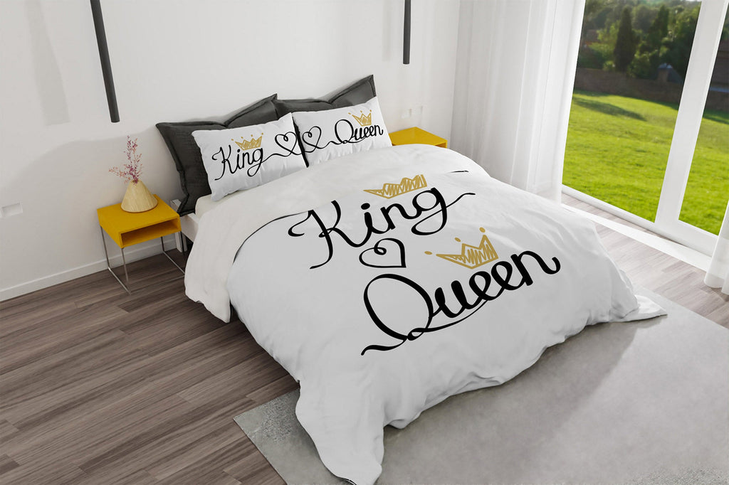 - Matrimoniale: Copripiumino 250 x 200 cm + doppia patella per fissare sotto il materasso di 50 cm + 2 federe 52 x 82 cm + patella interna