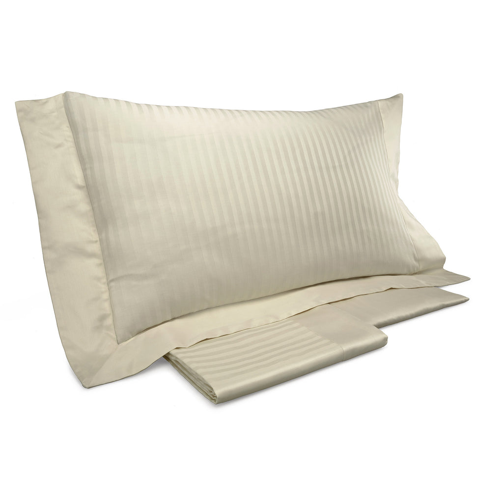 Completo copripiumino in raso di puro cotone rigato, 300 fili. Il pratico sacco copripiumino ti permette di inserire al suo interno il piumino della pesantezza che preferisci, caldissimo nei mesi invernali e più fresco nella stagione primaverile.