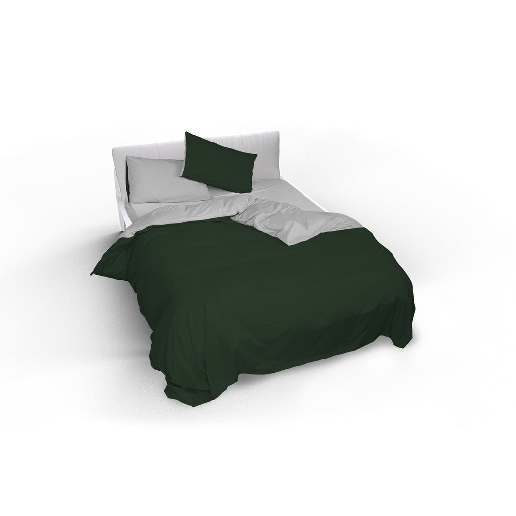 Copripiumino Matrimoniale con Sacco e Federe Tinta Unita Double Face Verde Oliva/Grigio Chiaro