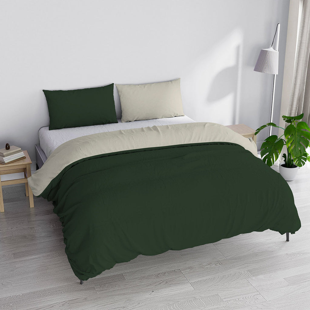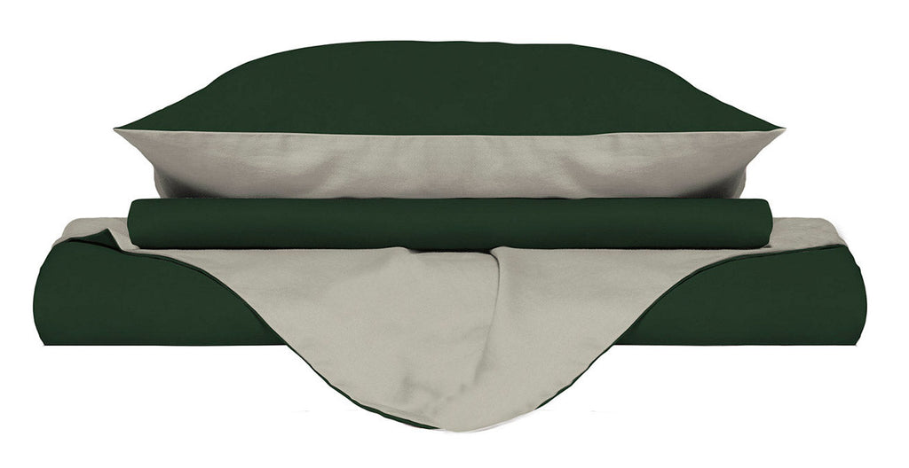 Copripiumino Matrimoniale con Sacco e Federe Tinta Unita Double Face Verde Oliva/Panna