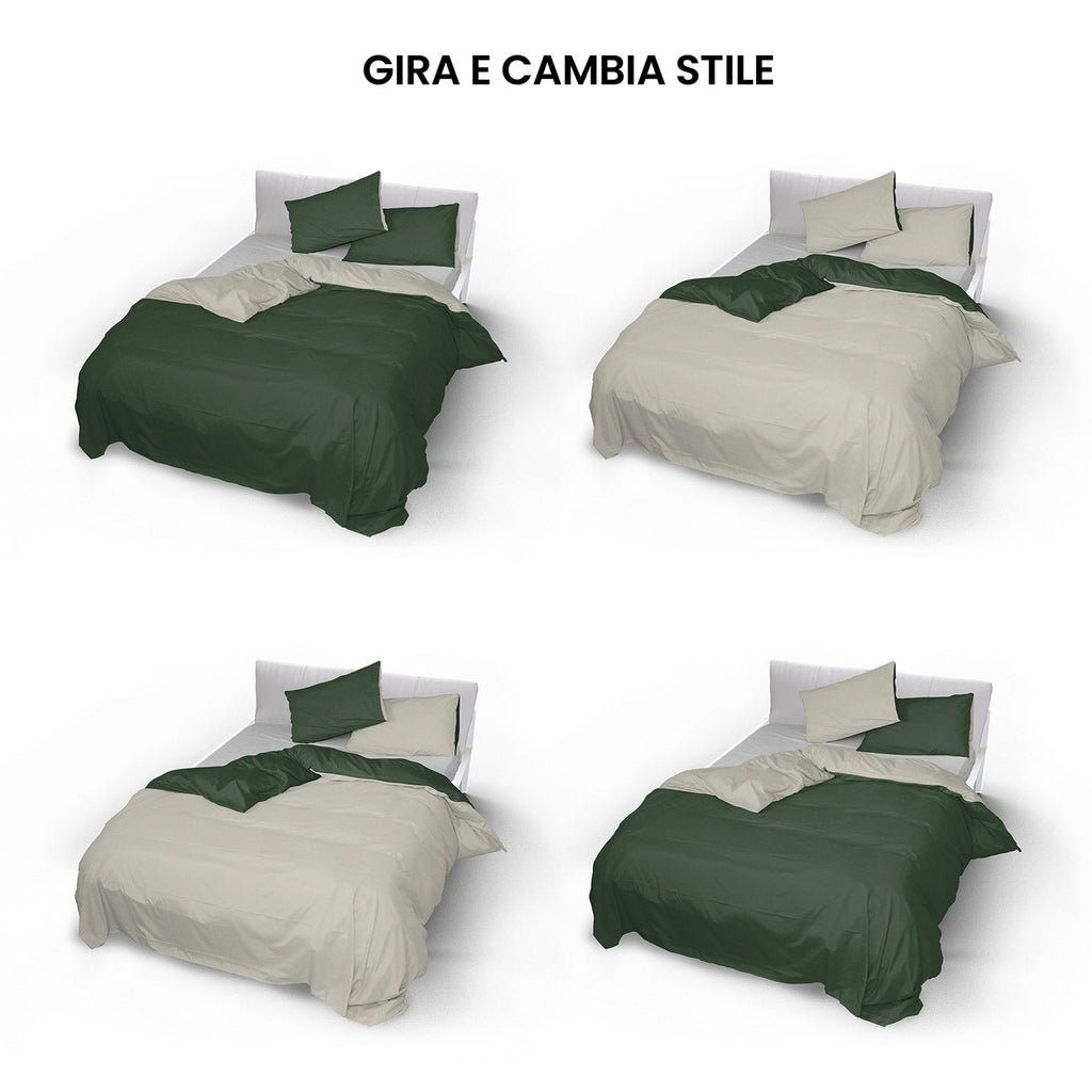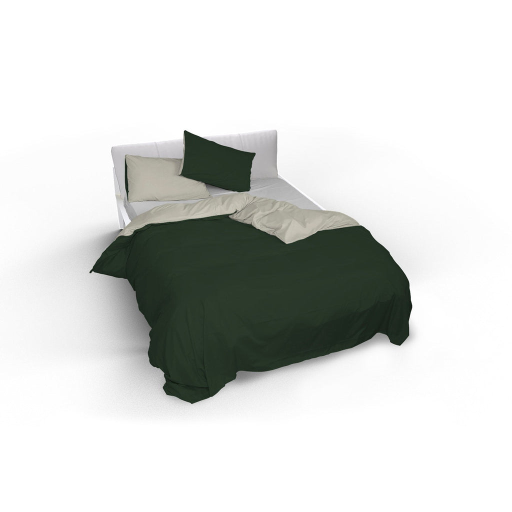 Copripiumino Matrimoniale con Sacco e Federe Double Face Verde Oliva/Panna