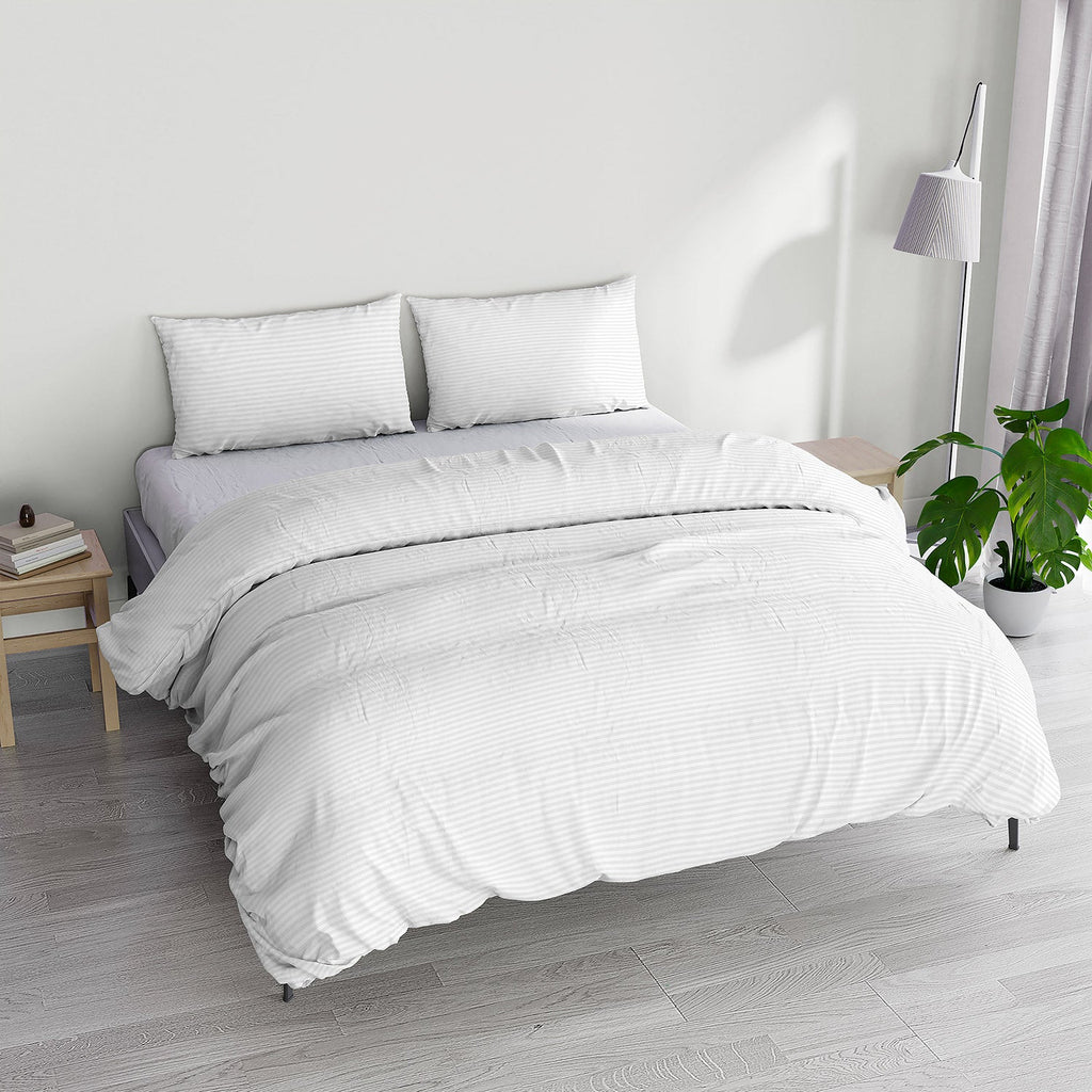 Copripiumino Matrimoniale con Sacco e Federe in Raso di Poliestere Bianco