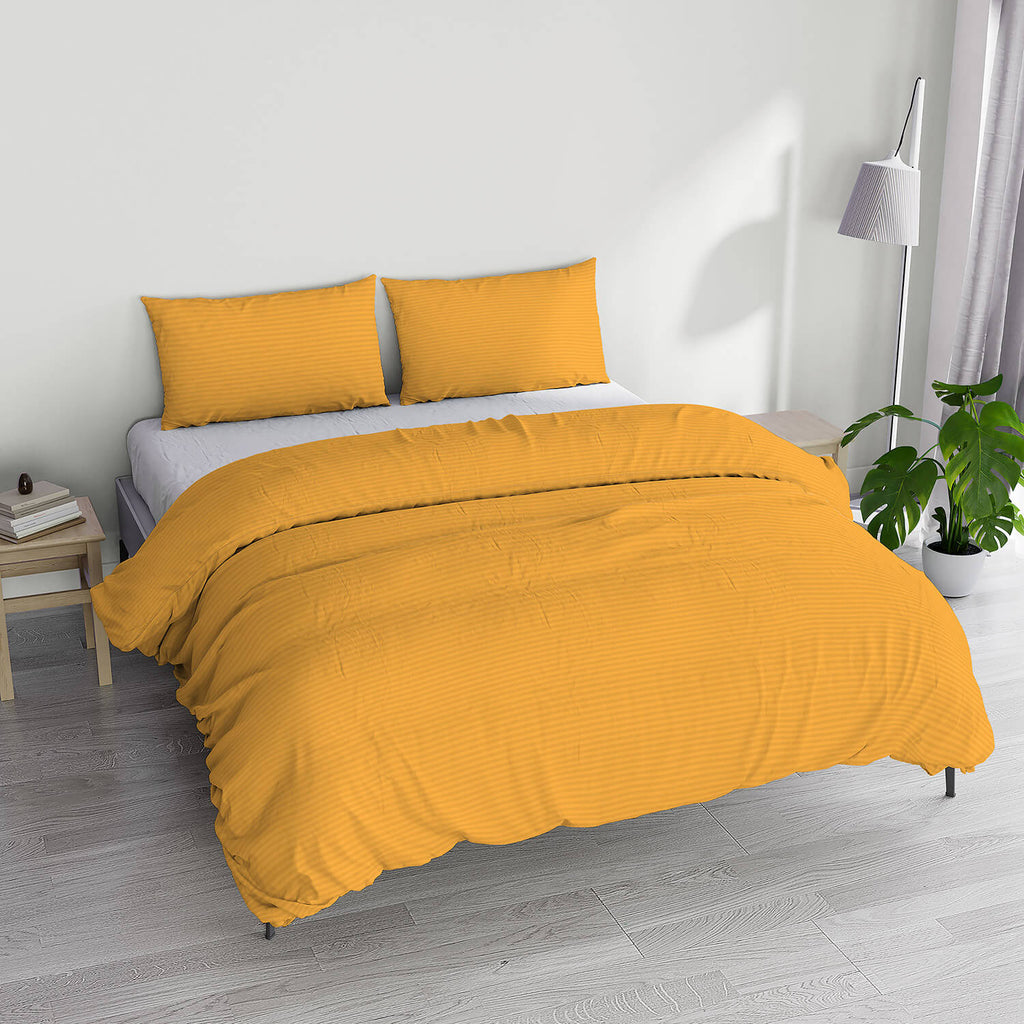 Copripiumino Matrimoniale con Sacco e Federe Tinta Unita Rigato Arancione