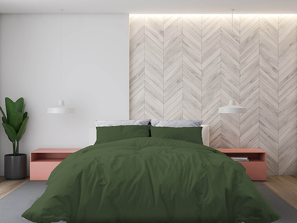 Copripiumino Matrimoniale con Sacco e Federe Tinta Unita Verde Scuro