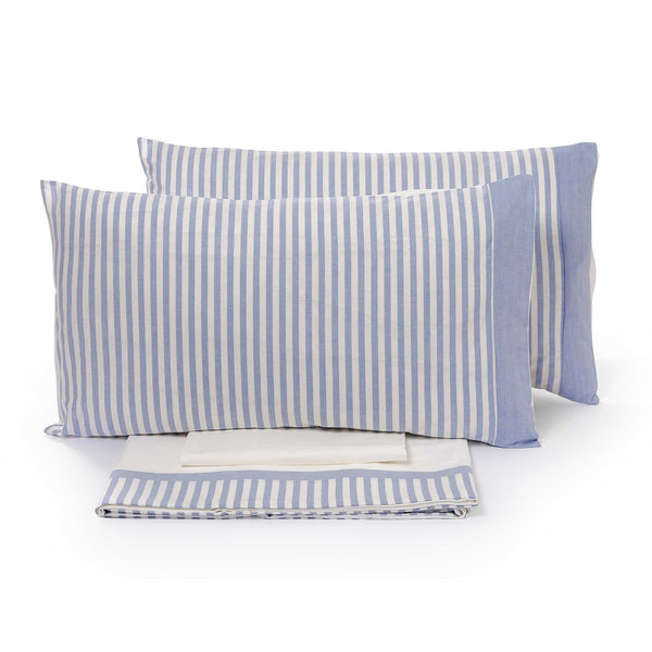 Parure copripiumino in puro cotone tinto in filo, riga media. Include: 1 sacco copripiumino e 2 federe. Interamente realizzato e confezionato in Italia secondo la tradizione tessile artigiana Toscana.