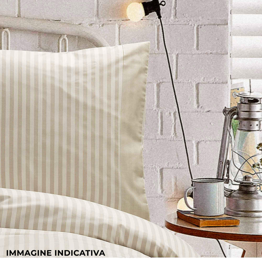 Parure copripiumino in puro cotone tinto in filo, riga media. Include: 1 sacco copripiumino e 2 federe. Interamente realizzato e confezionato in Italia secondo la tradizione tessile artigiana Toscana.