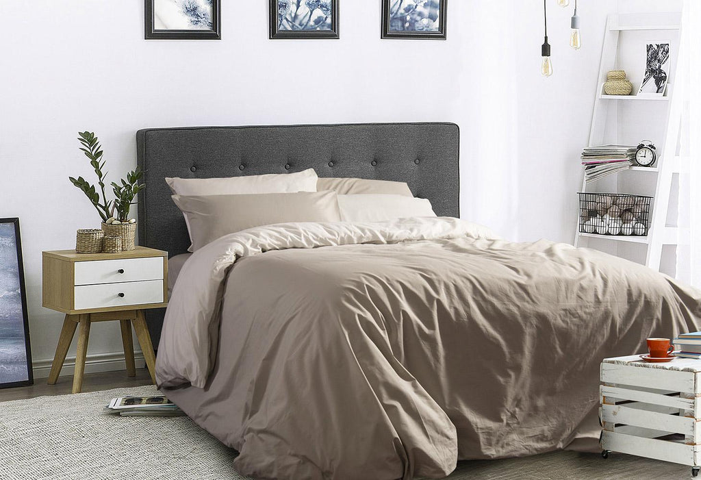 Parure copripiumino matrimoniale in raso di puro cotone. Avvolgi il tuo riposo in un morbidissimo copripiumino in puro cotone rinnovando il tuo arredo letto con la colorazione Ostrica e Grisaglia in versione double face.