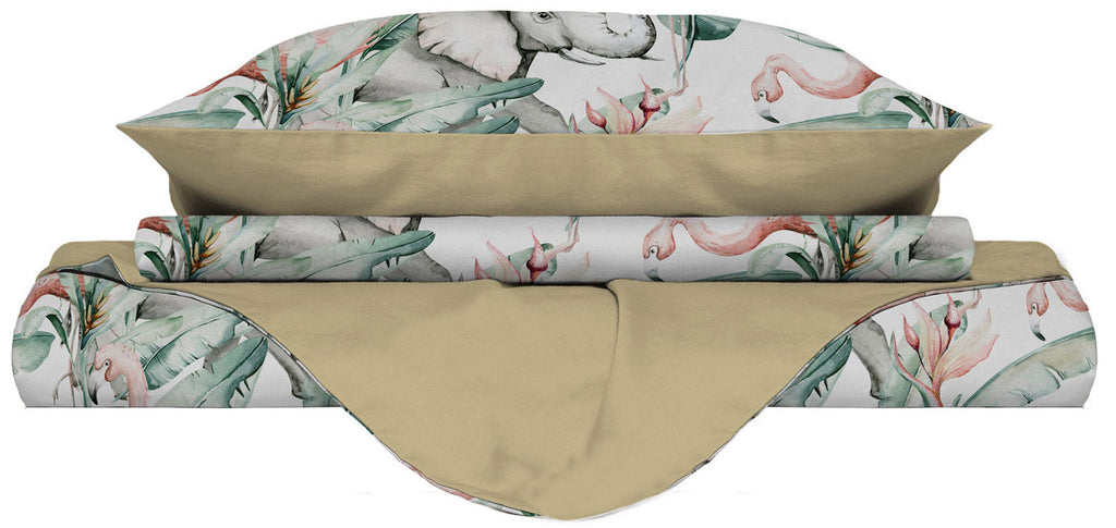 Parure copripiumino in microfibra stampata. Prodotto provvisto di sacco copripiumino e federe con certificazione Oeko tex che garantisce il rispetto per la natura e la totale assenza di sostanze nocive durante l'intero processo produttivo. Articolo Made in Italy.