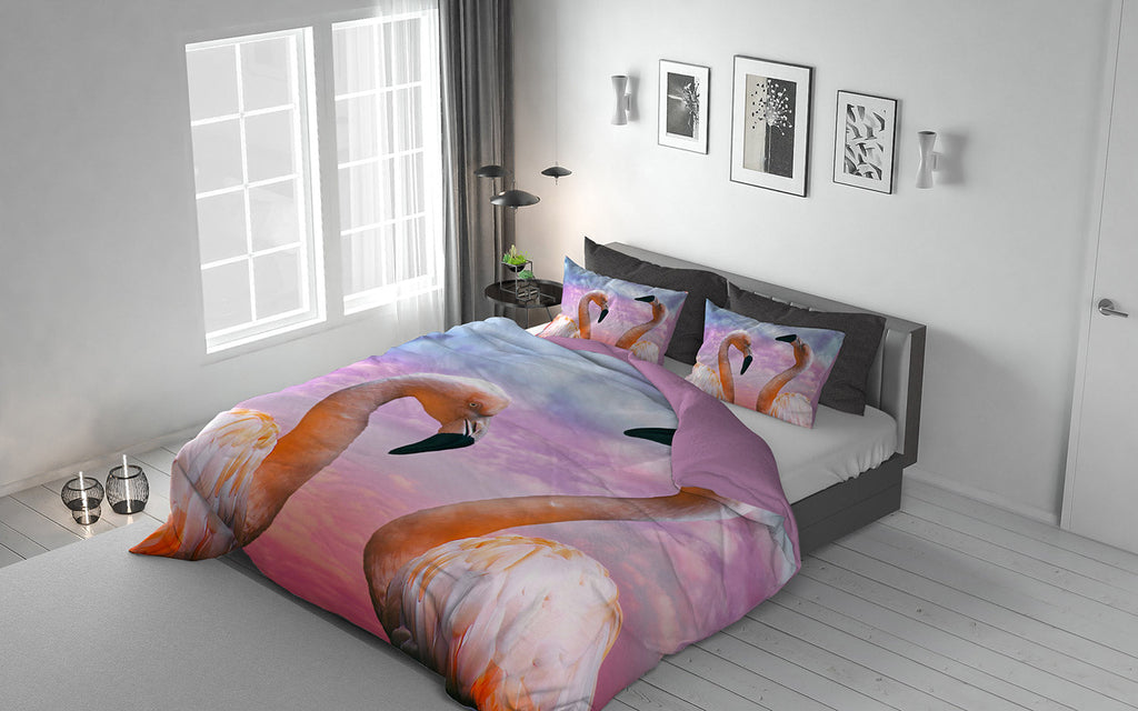 Copripiumino Matrimoniale con Federe Stampato in Microfibra Flamingo
