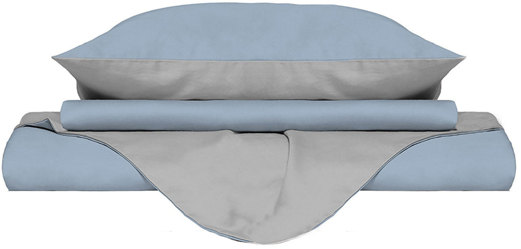 Copripiumino Matrimoniale con Sacco e Federe Doubleface Azzurro/Grigio Chiaro