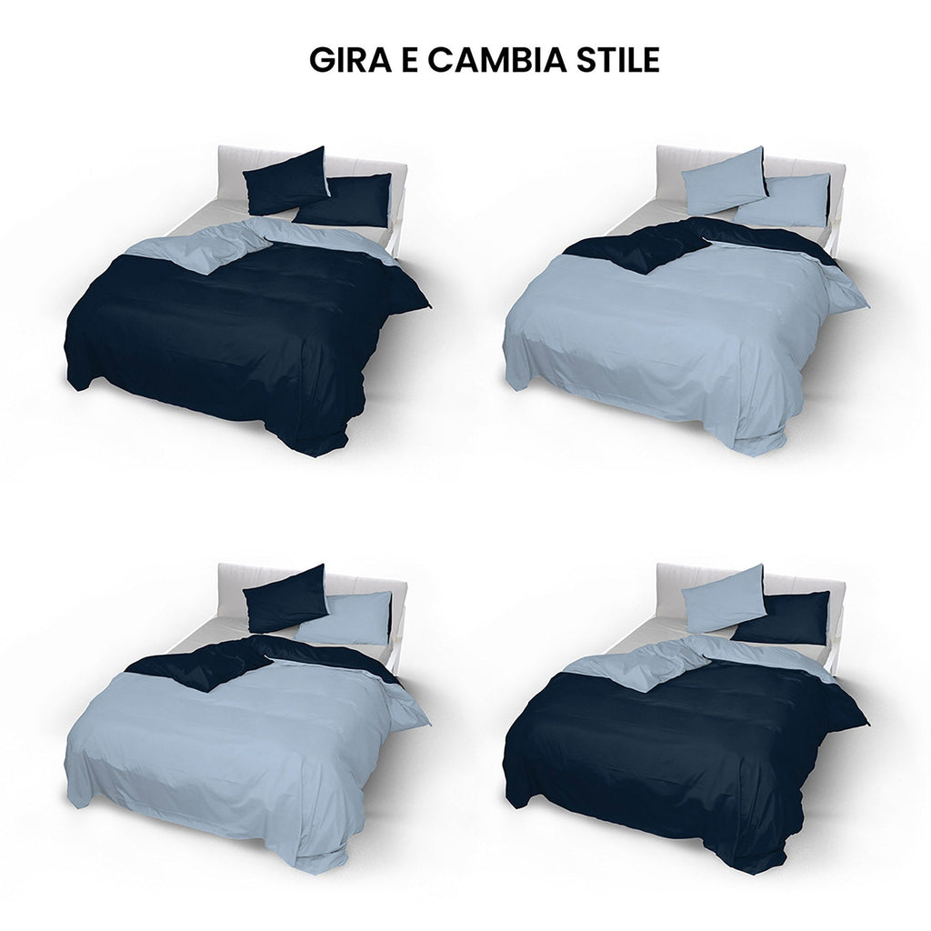 Copripiumino con Sacco e Federe Doubleface Blu Scuro\/Azzurro Varie Misure