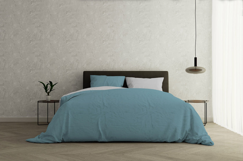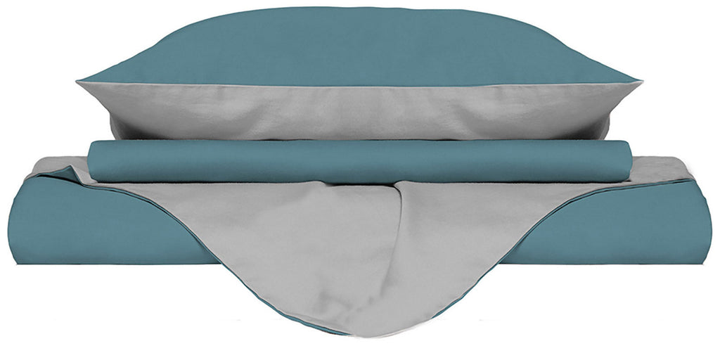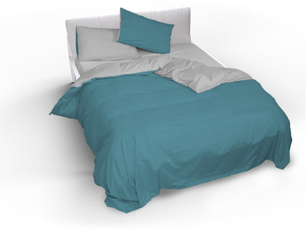 Copripiumino con Sacco e Federe Matrimoniale Tinta Unita Doubleface Ottanio/Grigio Chiaro