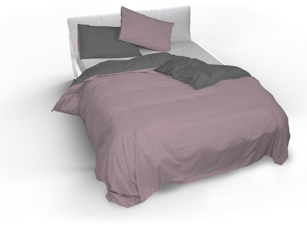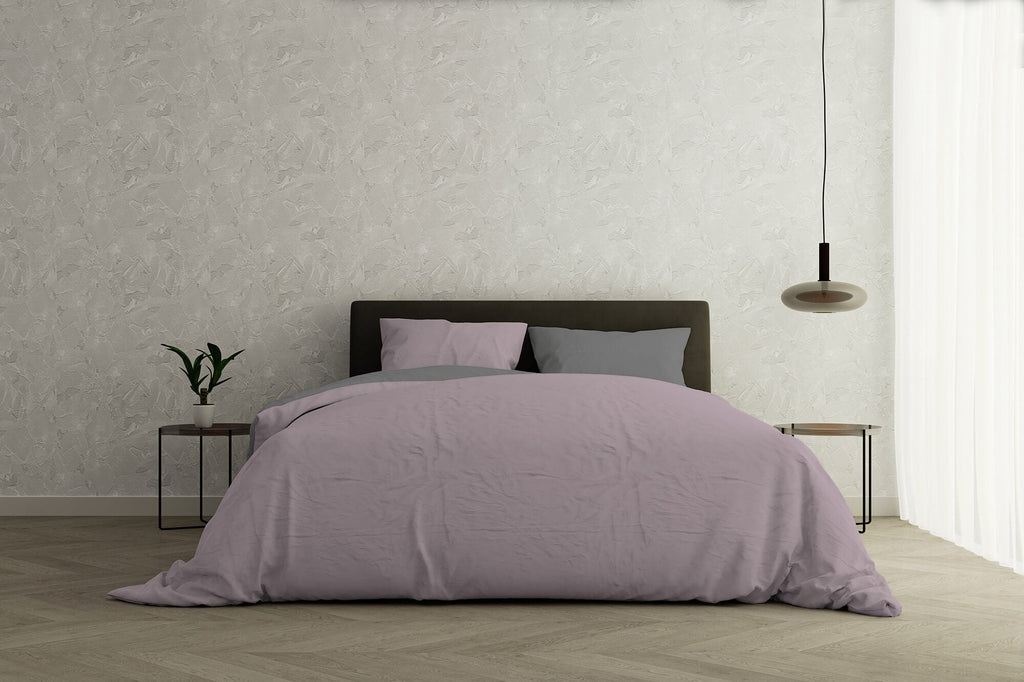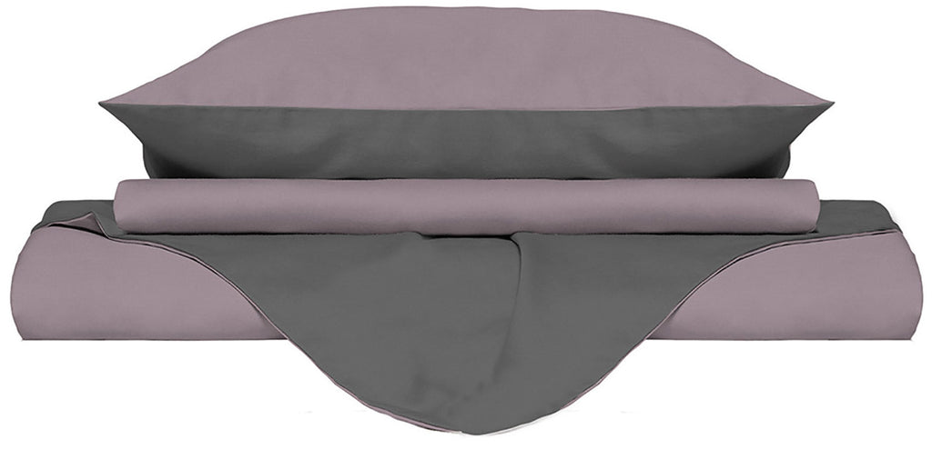 Copripiumino Matrimoniale con Sacco e Federe Doubleface Rosa Antico/Fumo