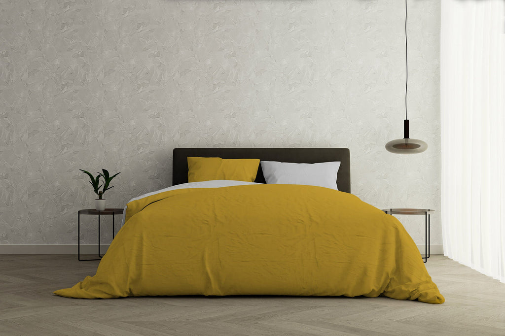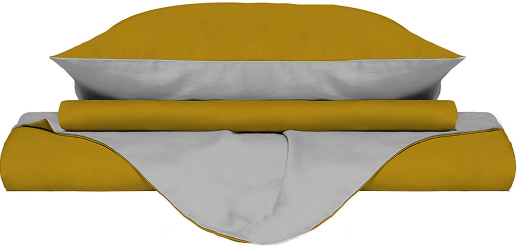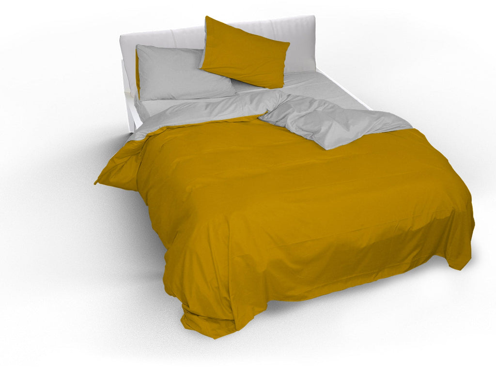 Copripiumino Matrimoniale con Sacco e Federe Doubleface Senape/Grigio Chiaro