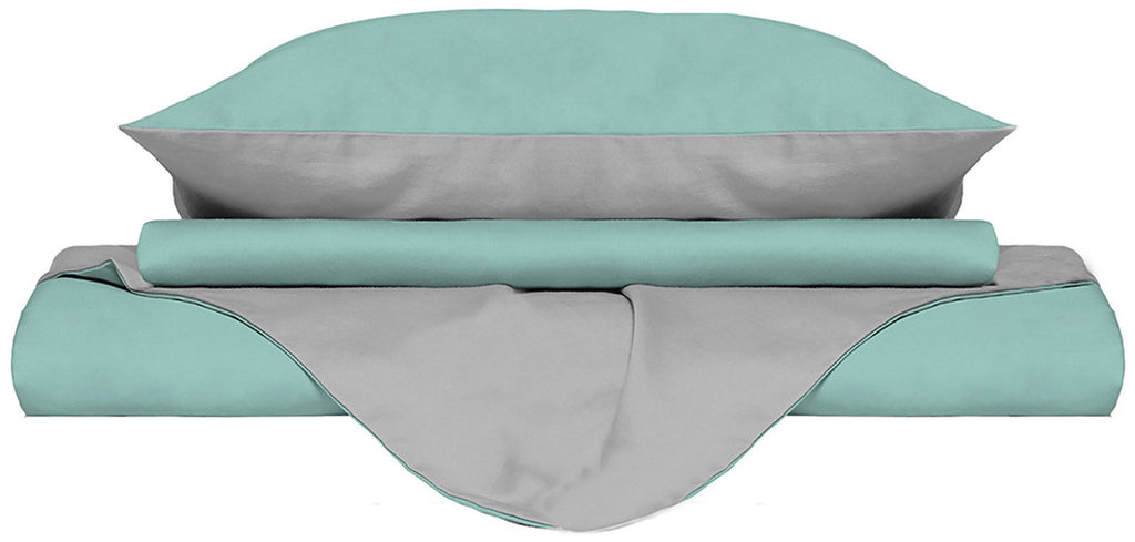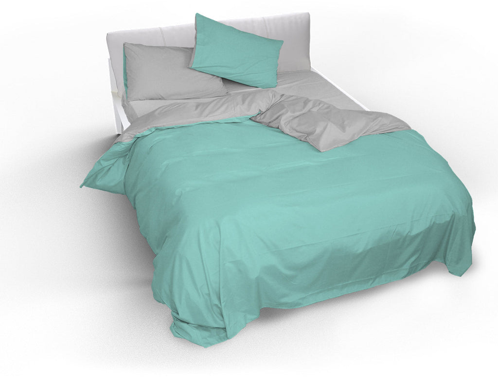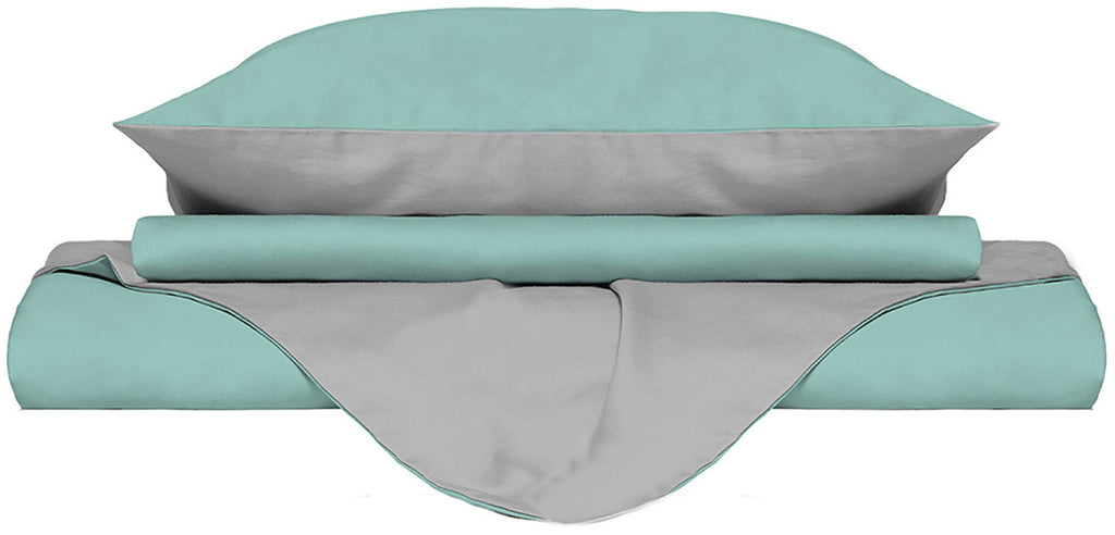 Copripiumino con Sacco e Federe Matrimoniale Tinta Unita Doubleface Verde Acqua/Grigio Chiaro