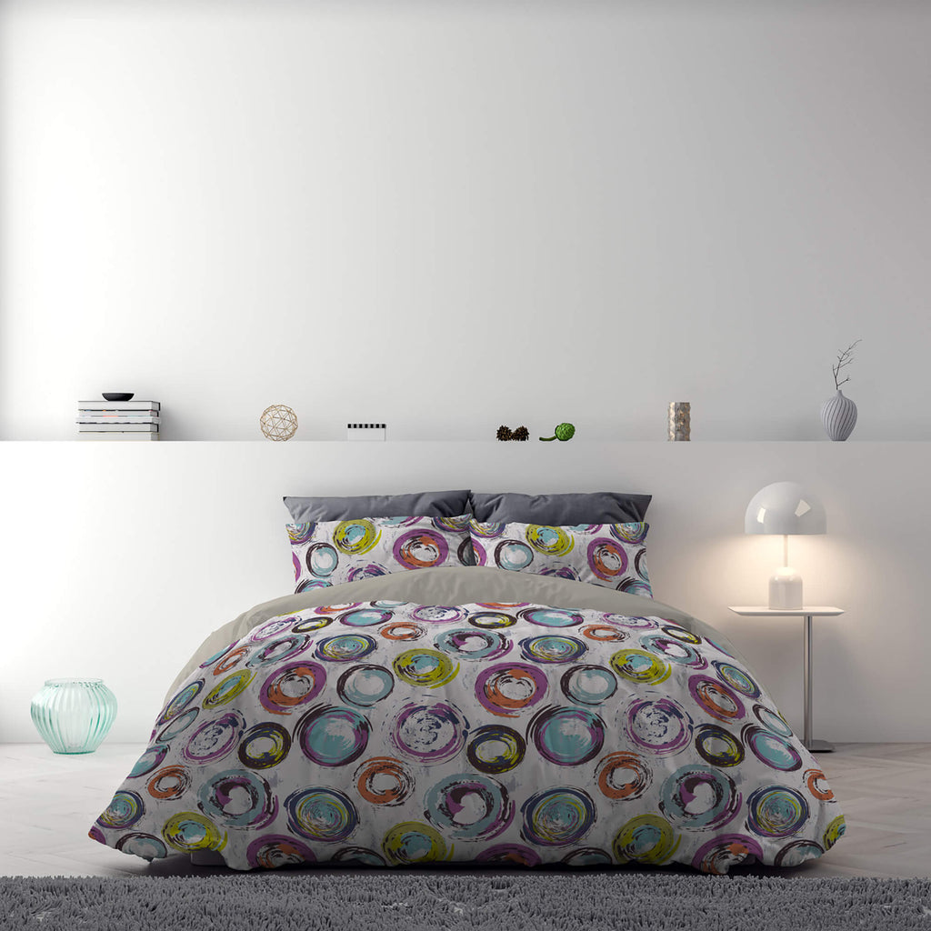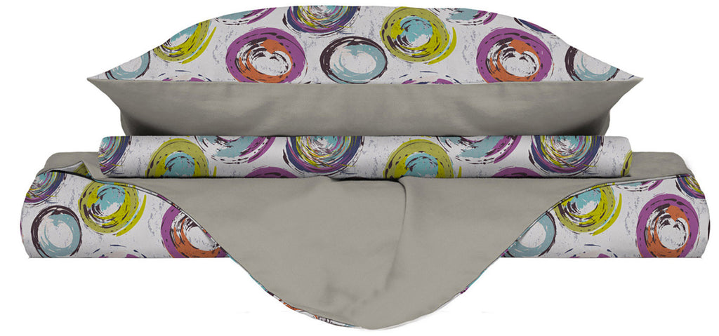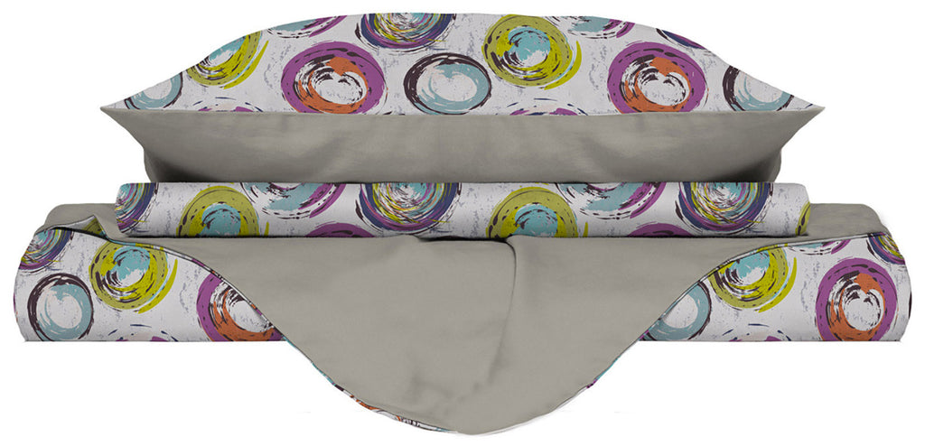 Copripiumino Matrimoniale con Stampa sul Sacco e Federe Doubleface Cerchi Astratti