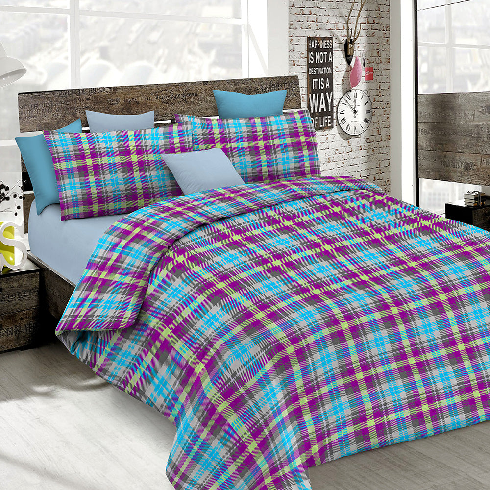 Copripiumino Matrimoniale con Stampa sul Sacco e Federe Doubleface Scozzese