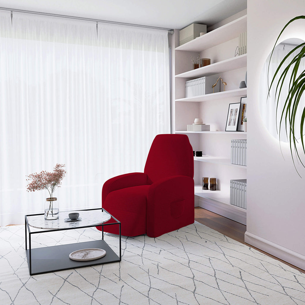 Copripoltrona Reclinabile Elasticizzato Taglia Unica con Tasca Laterale Bordeaux