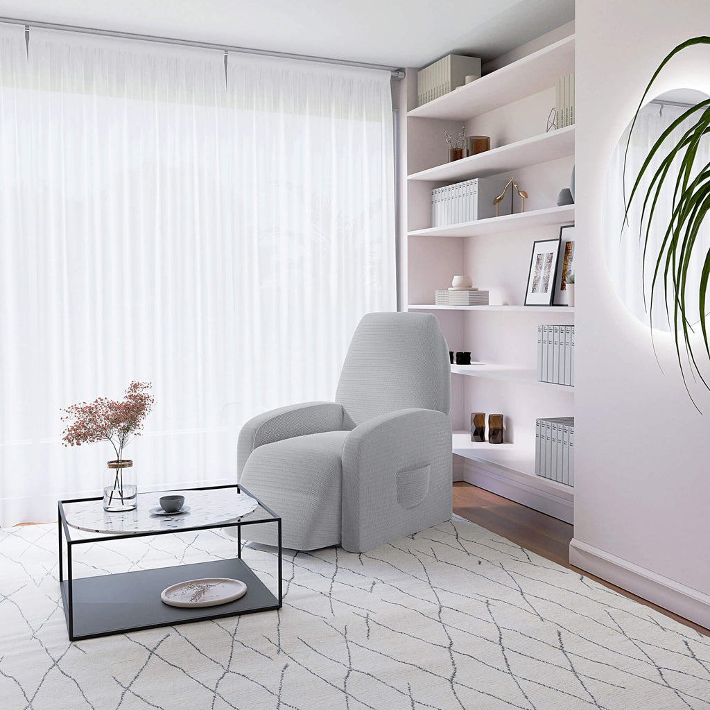 Copripoltrona Reclinabile Elasticizzato Taglia Unica con Tasca Laterale Grigio Chiaro