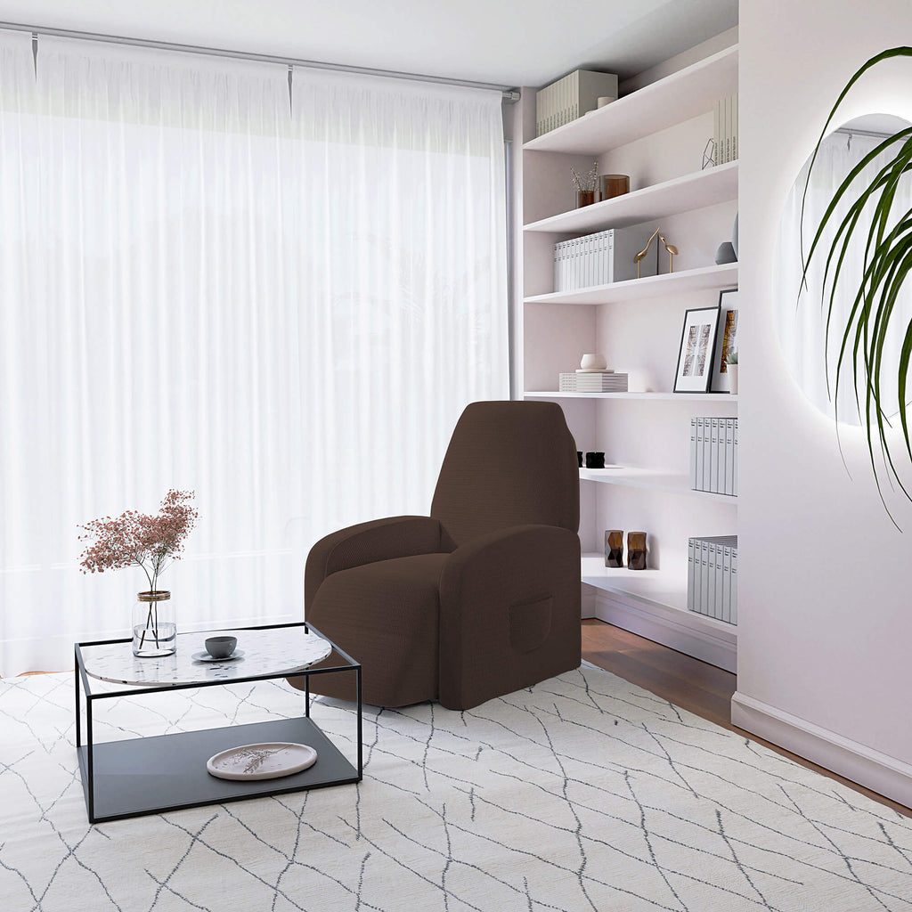 Copripoltrona Reclinabile Elasticizzato Taglia Unica con Tasca Laterale Marrone