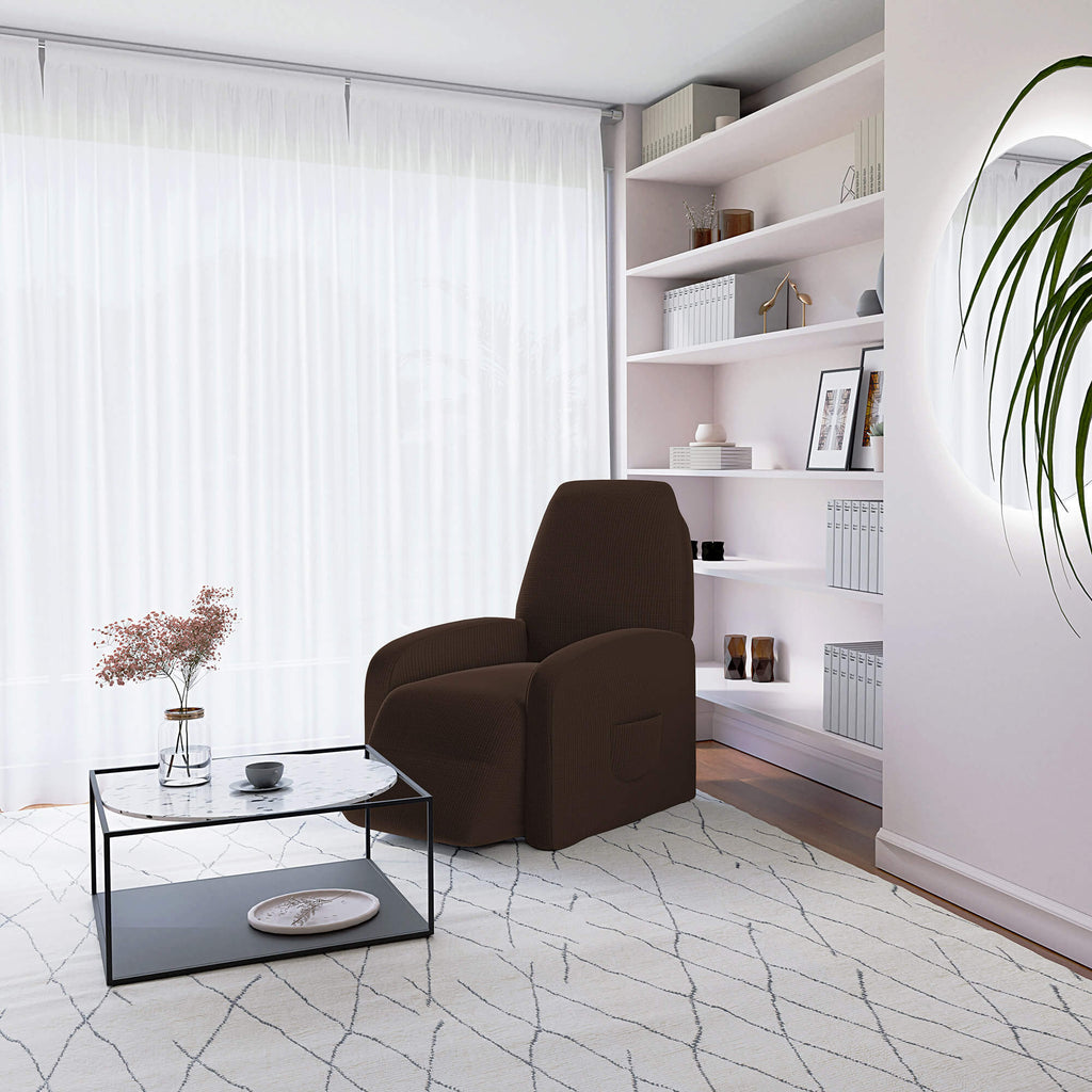 Copripoltrona Reclinabile Elasticizzato Taglia Unica con Tasca Laterale Marrone
