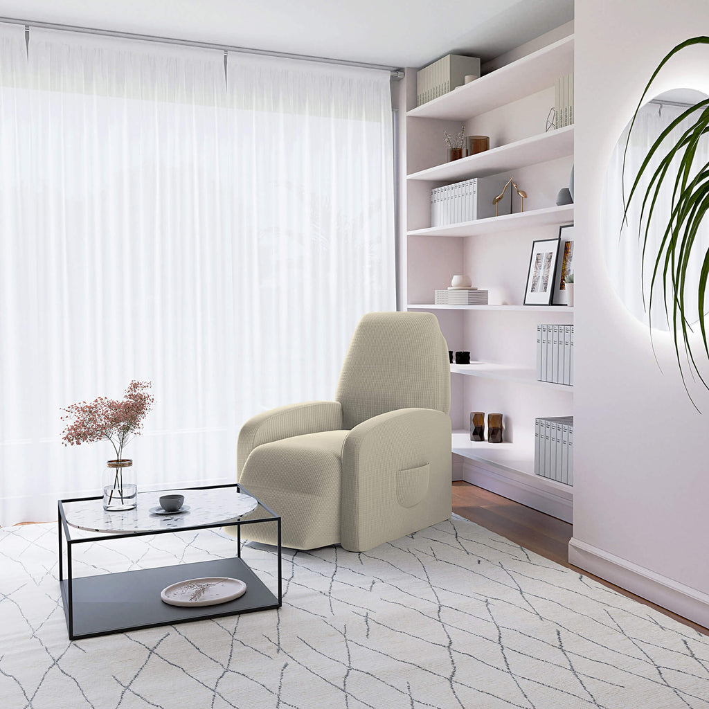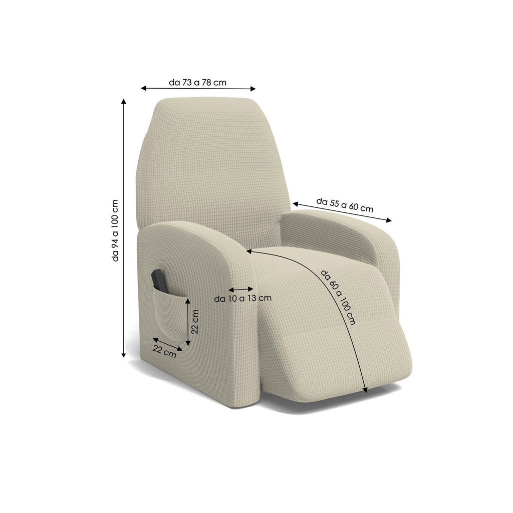 Copripoltrona Reclinabile Elasticizzato Taglia Unica con Tasca Laterale Panna