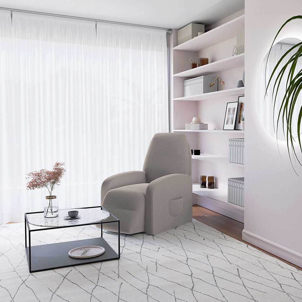 Copripoltrona Reclinabile Elasticizzato Taglia Unica con Tasca Laterale Tortora